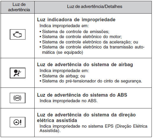 A negligência quanto a investigação da causa das advertências descritas abaixo poderá resultar em anormalidade na operação do sistema e possivelmente resultar em acidentes.